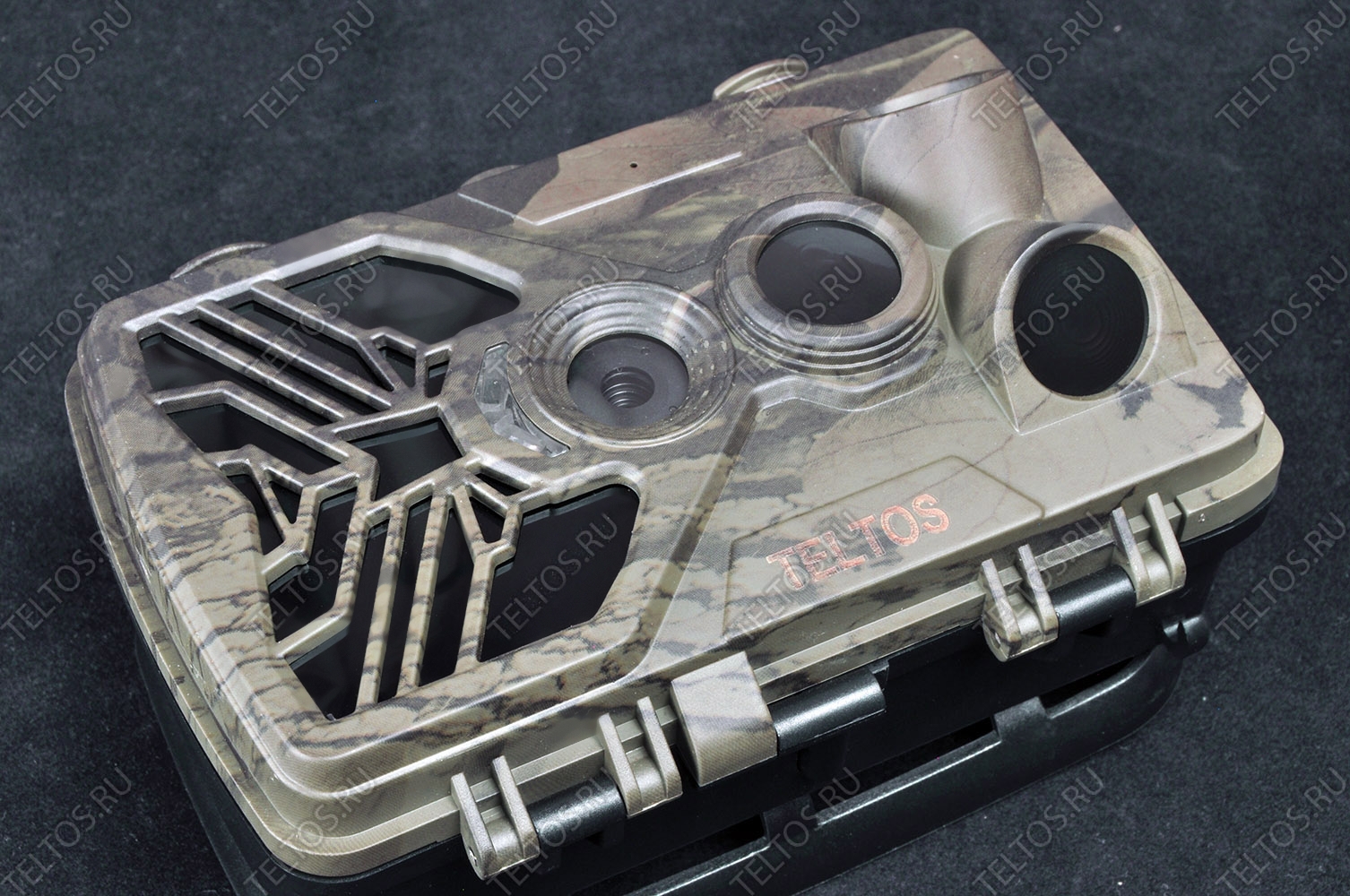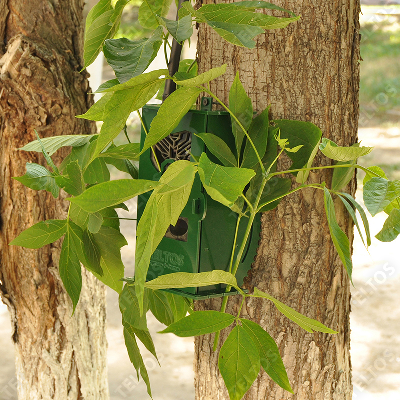 - Для реализации такого способа маскировки мы предусмотрели отверстия в верхней и нижней части корпуса TELTOS. В эти отверстия можно вставить части ветвей с окружающих деревьев, что позволит слиться именно с местной флорой в каждом отдельном случае. Дополнительные крайние насечки в 3 мм предназначены для гибкого шнура или капрона, которым можно перемотать маскировочный корпус и вставить под него кору с соседнего дерева. Так вы замаскируете фотоловушку с фронтов.