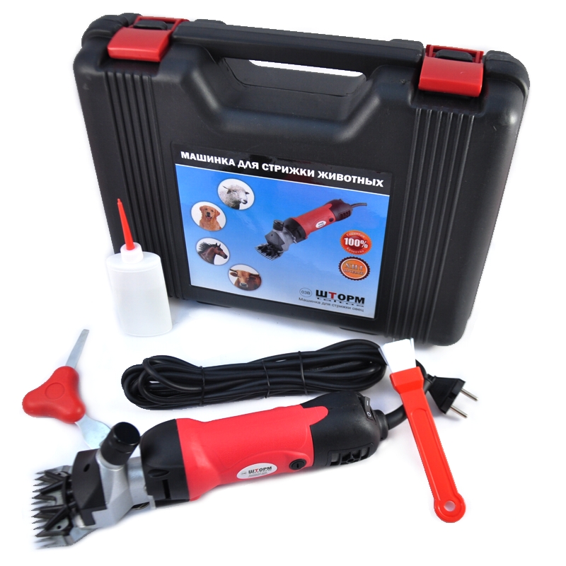 Электрические машинки для стрижки животных ШТОРМ-03В. Благодаря обновленной конструкции и двигателю мощностью 380 Вт время, необходимое для стрижки, сокращается в несколько раз. Профессиональная механическая конструкция увеличивает срок службы лезвия. При использовании машинки на полной мощности двигателя можно состричь даже слежавшуюся грязную шерсть. Подходят для стрижки всех типов шерсти, в том числе грубошерстных и курдючных. Машинка обладает низким уровнем вибрации и шума при работе. Поставляется в пластиковом кейсе.